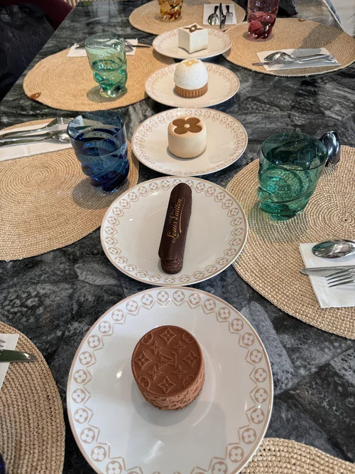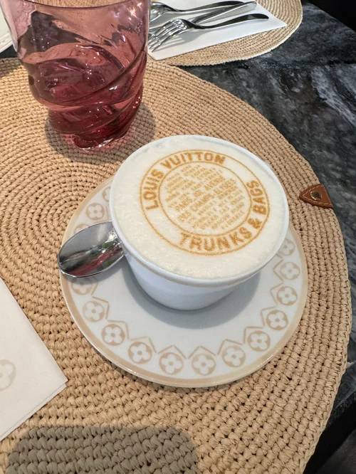 So, I was off to the LV Cafe aka Maxime Frederic at Louis Vuitton, to meet with my director, a model and some others from a makeup academy that we would be working with that weekend. My director took it upon herself to order an assortment of cheeky Louis Vuitton themed pastries, six if I recall and multiple cafes with their signature logos etched into the foam. I have to say it was an experience that I probably would never have on my own due to the elitist nature and touristy nature of it, but I’m glad to say I went to say I experienced it. The atmosphere was class all the way but what I was most enthusiastic about was the showroom of Louis Vuitton trinkets, books and toys that were on display. Virgil Abloh’s influence was everywhere and it was a bit nostalgic to see how his work has lived on in this way. Of course my cynical self was thinking about how all of that creativity and genius now has a small space in a posh cafe where picture opportunities and selfies were of utmost importance. Mere memories to publish on Instagram or be stored away in camera rolls only to be showcased when clout is running low. Maybe I fall into this category myself, the category being one of those people who chase clout by sharing images, who knows. However, I appreciated the curation of objects as well as observing those who didn’t have cameras at the ready and like me, took time to read back of book covers and inside the sleeves.